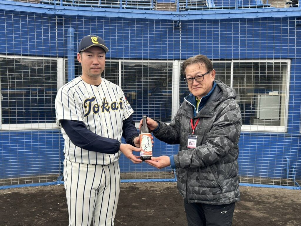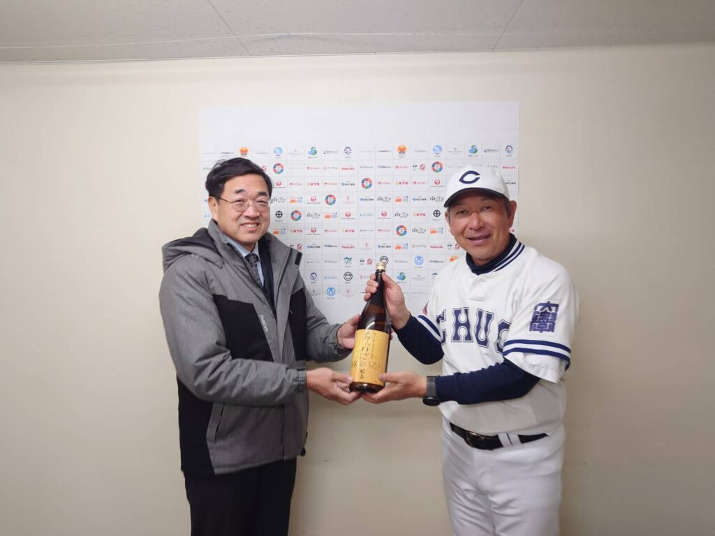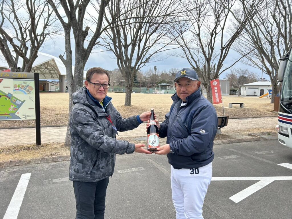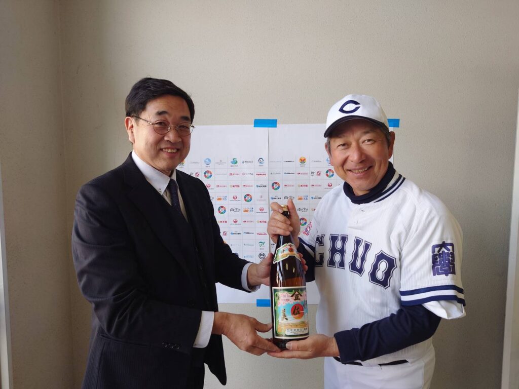 御提供いただいた焼酎は,各球場で試合前に銘柄と特徴をアナウンスし,試合後に両チームへ贈呈しています。